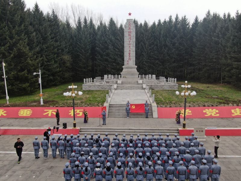 活动中,全体人员换上了红军服,身临其境感受当年抗联将士为民族、为国家浴血奋战、不怕牺牲的抗联精神。在杨靖宇烈士殉国地遗址,全体人员唱响国歌,以沉痛的心情瞻仰了杨靖宇烈士遗像并向烈士纪念碑敬献花篮,默哀致意。在鲜红的党旗下,全体党员举起右手,握紧拳头,开始重温入党誓词宣誓活动,让党员在党旗下接受心灵的净化和洗礼,牢记共产党员的政治责任和历史使命,永葆共产党员的政治本色。